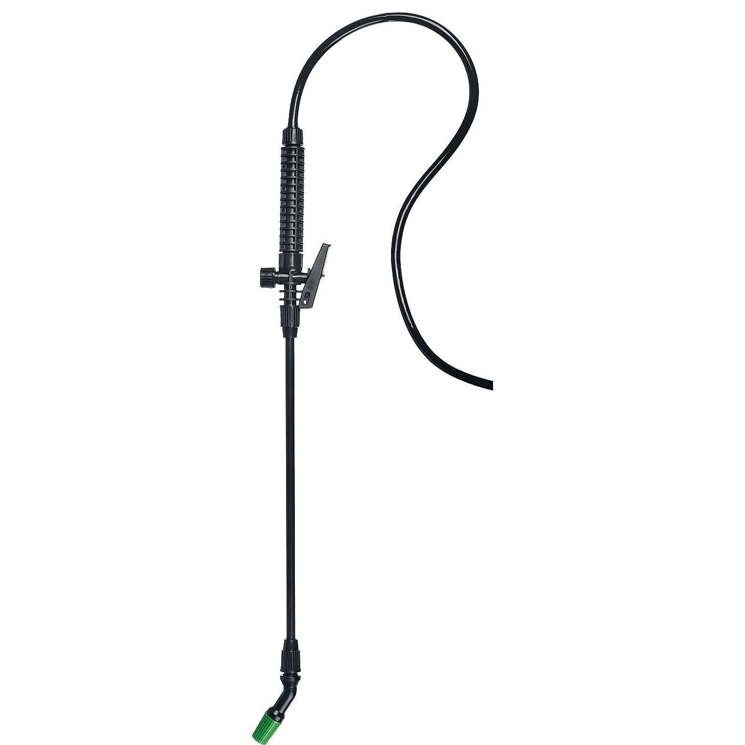 Удлинитель выполнен из алюминия, армирование шланга, фиксатор полива, ремень для переноски на плече, клапан сброса давления.