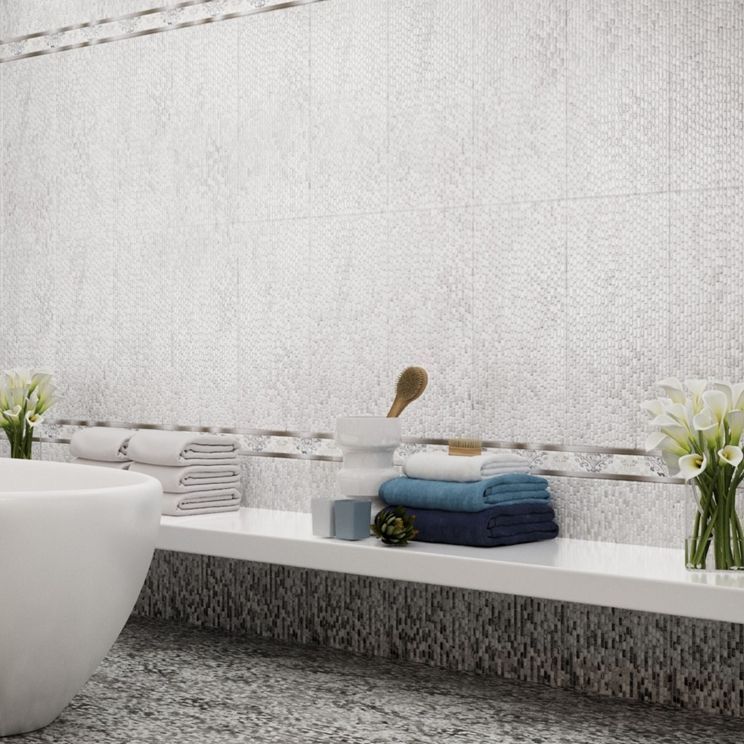 Коллекция Венеция Axima представляет потрясающее дизайнерское решение: традиционные итальянские орнаменты органично обыграны в манере оп-арт, возникшей в 50-е годы прошлого века. Активная геометрия является сильным акцентом в современном модном интерьере. Элементы коллекции — это светлые серо-бежевые плитки, состоящие из множества рельефных прямоугольников. Исходя из индивидуальных предпочтений дополнить дизайн можно плитками с более тёмным серым цветом, либо с более насыщенным бежевым. Для совмещения зон разных оттенков существует плитка с каскадным переходом.