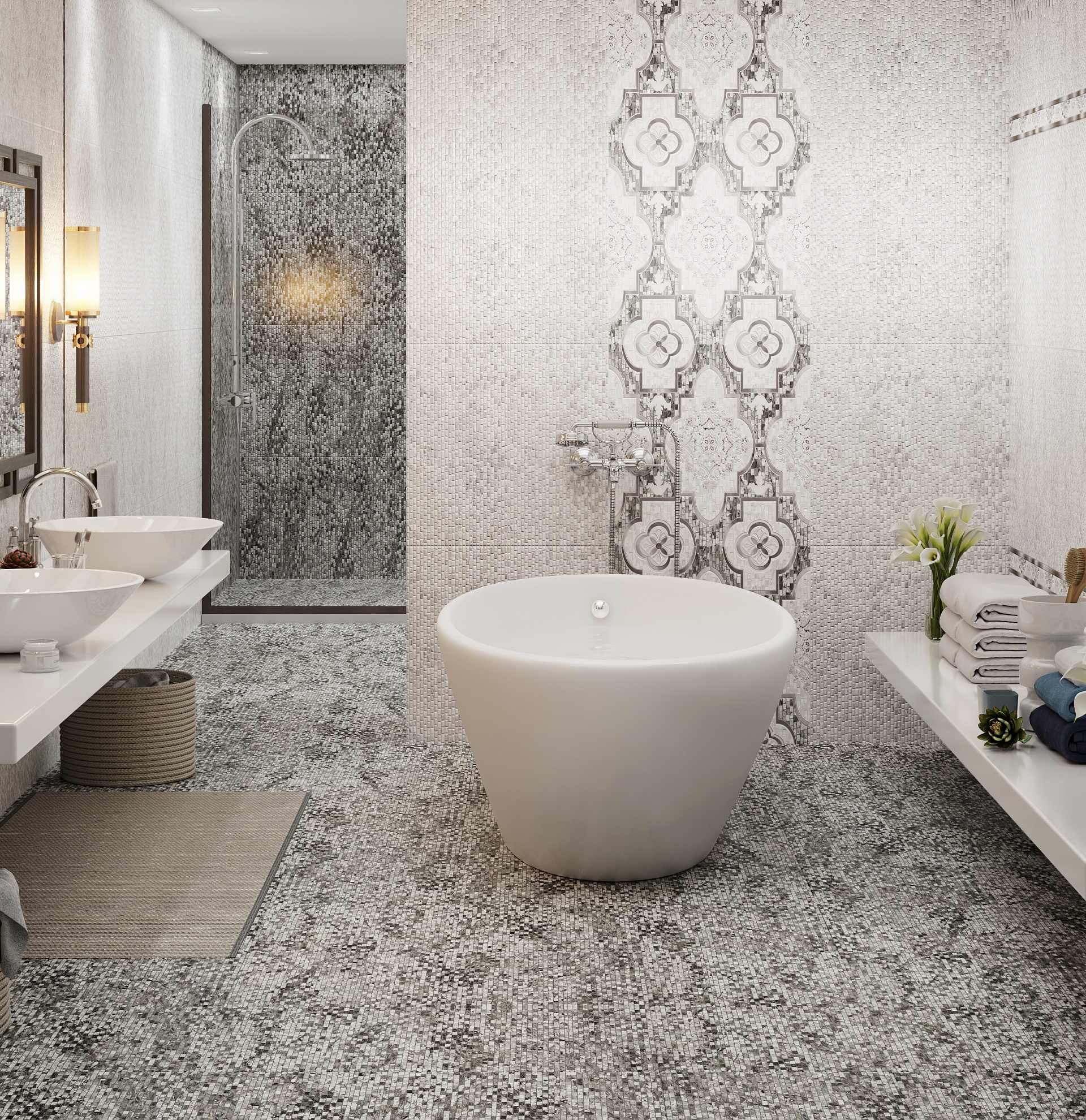 Коллекция Венеция Axima представляет потрясающее дизайнерское решение: традиционные итальянские орнаменты органично обыграны в манере оп-арт, возникшей в 50-е годы прошлого века. Активная геометрия является сильным акцентом в современном модном интерьере. Элементы коллекции — это светлые серо-бежевые плитки, состоящие из множества рельефных прямоугольников. Исходя из индивидуальных предпочтений дополнить дизайн можно плитками с более тёмным серым цветом, либо с более насыщенным бежевым. Для совмещения зон разных оттенков существует плитка с каскадным переходом.