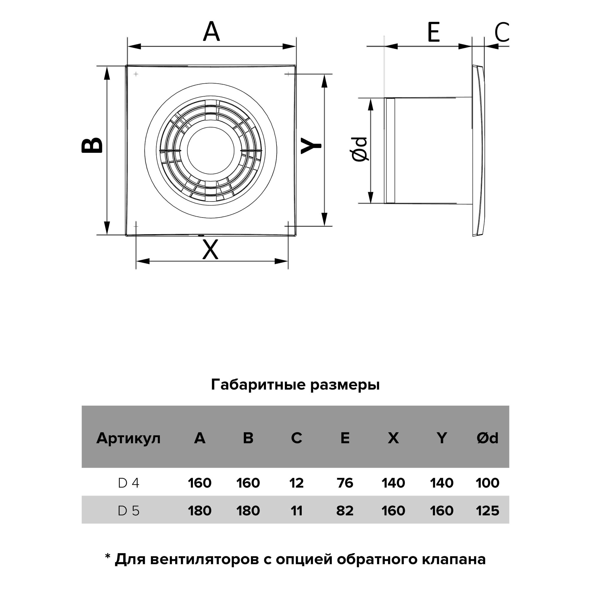 Вентилятор D 4 – вытяжной накладной вентилятор. Предназначен для удаления отработанного воздуха из помещения. Подходит для установки в ванную, туалет и другие бытовые помещения. Монтируется в вентиляционные шахты или круглые воздуховоды.