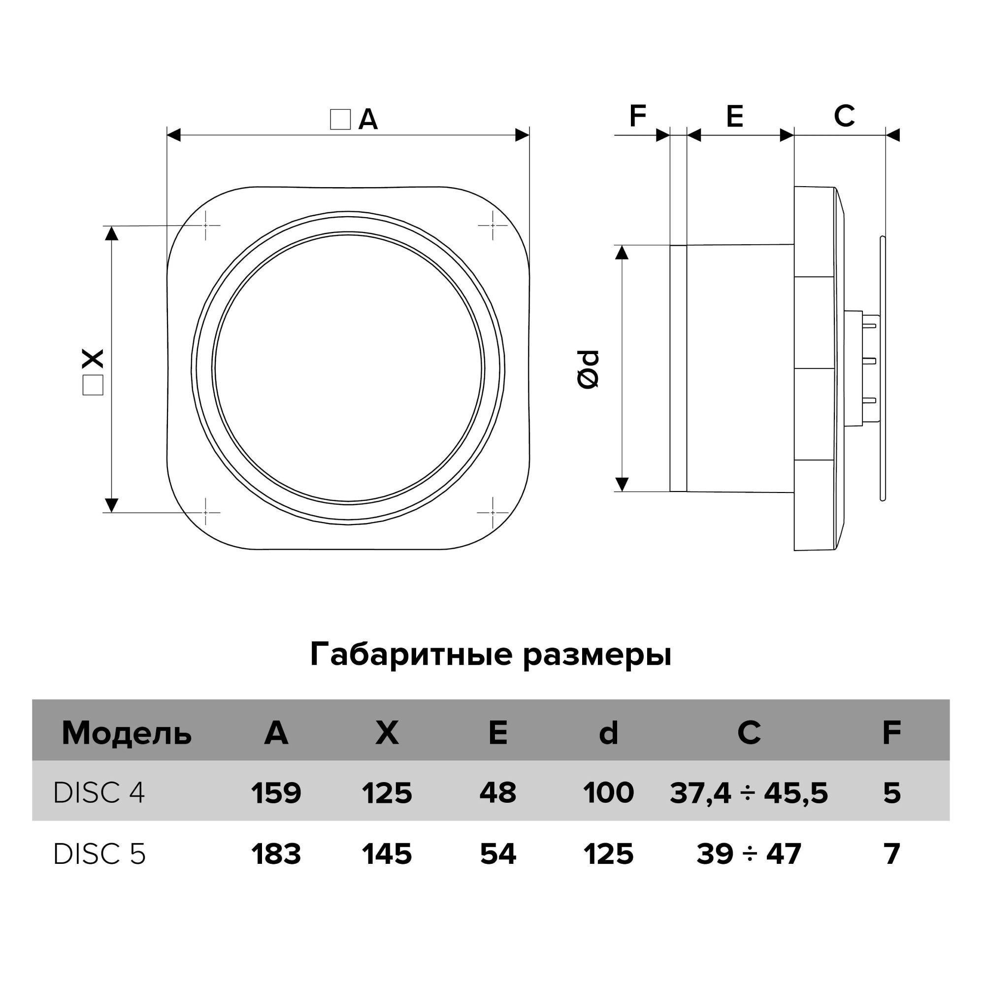 Вентилятор Era Disc 4 применяется для вентиляции туалета, ванной комнаты или кухни. Устанавливается в вытяжную шахту, к поверхности стены крепится с помощью четырех шурупов. Производительность можно изменять за счет двух вариантов положения лицевой решетки. Патрубок, который вставляется в вентиляционный канал, имеет длину всего 48 миллиметров.