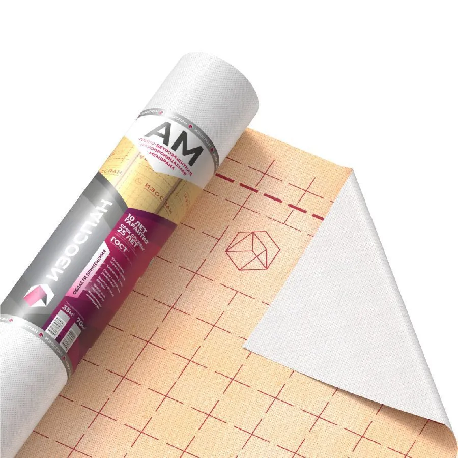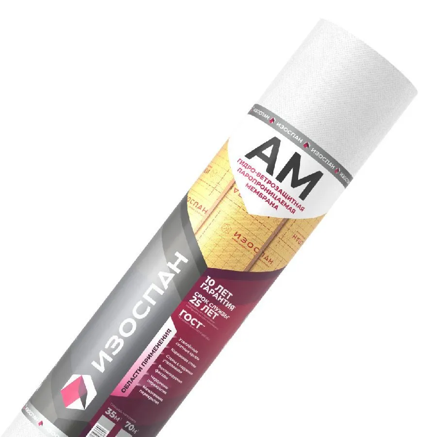 Изоспан AМ — материал, выполненный из полипропиленовой микропористой мембраны, усиленной с двух сторон полипропиленовым нетканым полотном.