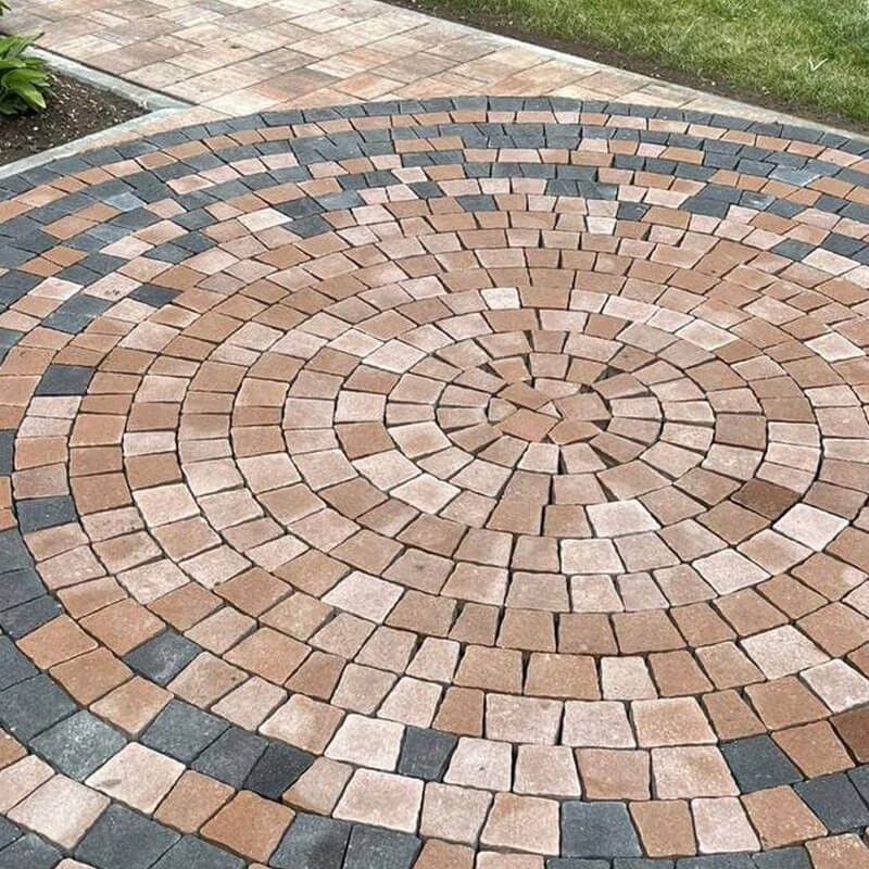 С тротуарной плиткой «Трапеция» можно создать самые разнообразные рисунки, не ограничивая фантазию строгой геометрией. Благодаря трапециевидной форме и округлым краям, плитка удобно поворачивается относительно друг друга, что позволяет создавать плавные изгибы и круговые композиции с любым радиусом.