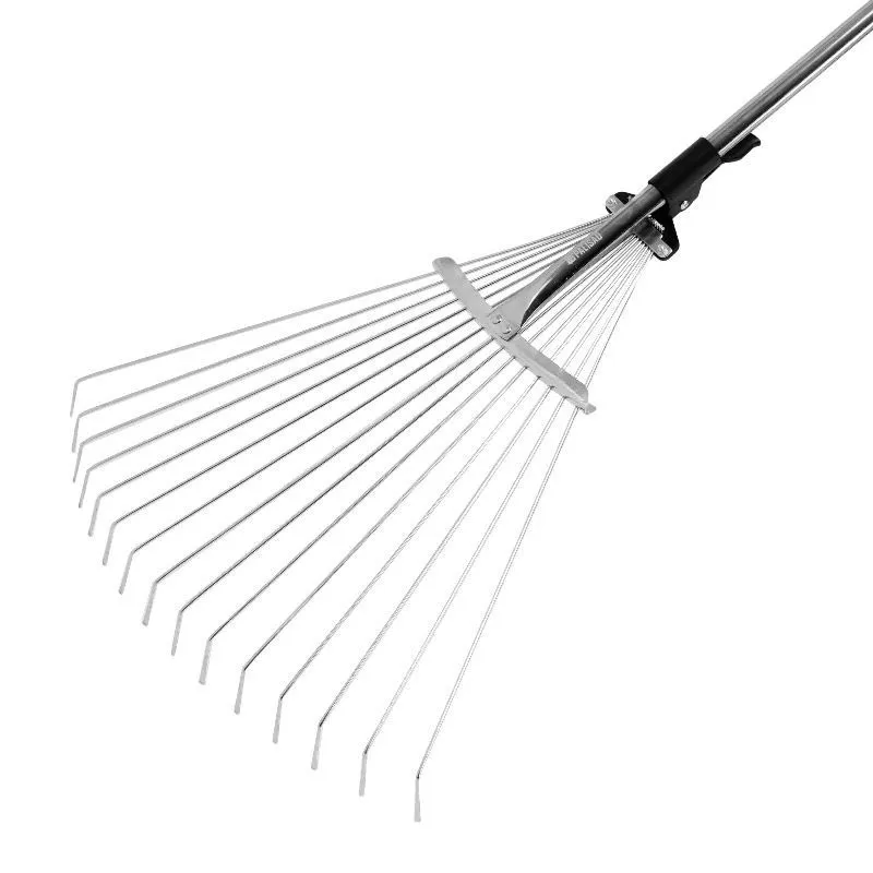 Грабли веерные стальные Palisad 6175655, 190-520 х 1200-1500 мм, раздвижные с 15 зубьями и стальным черенком пригодятся для работы на дачном участке. Они используются при уборке веток, мусора, опавших плодов с газонов и грядок.