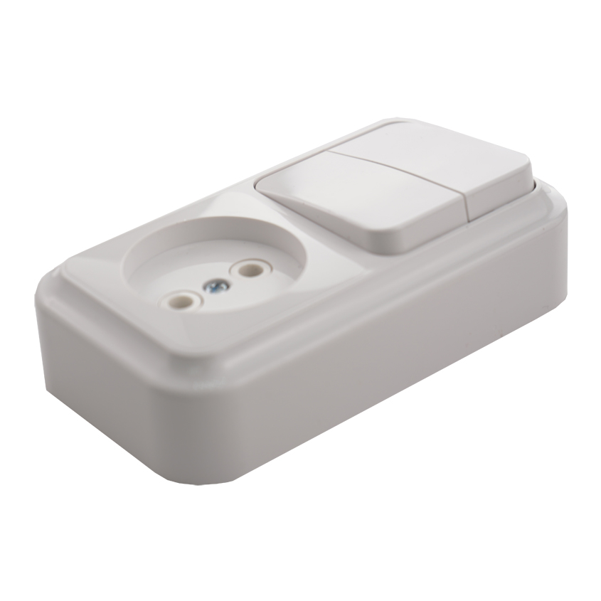 Блок электроустановочный: одноклавишный выключатель + розетка.