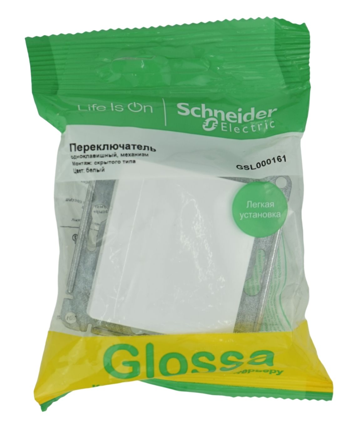 Переключатель от производителя Schneider серии Glossa. Подходит для сетей 250 В, на ток 10 А.