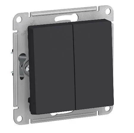 Выключатель двухклавишный встраиваемый Atlas Design (Systeme Electric/Schneider Electric), карбон (ATN001051)