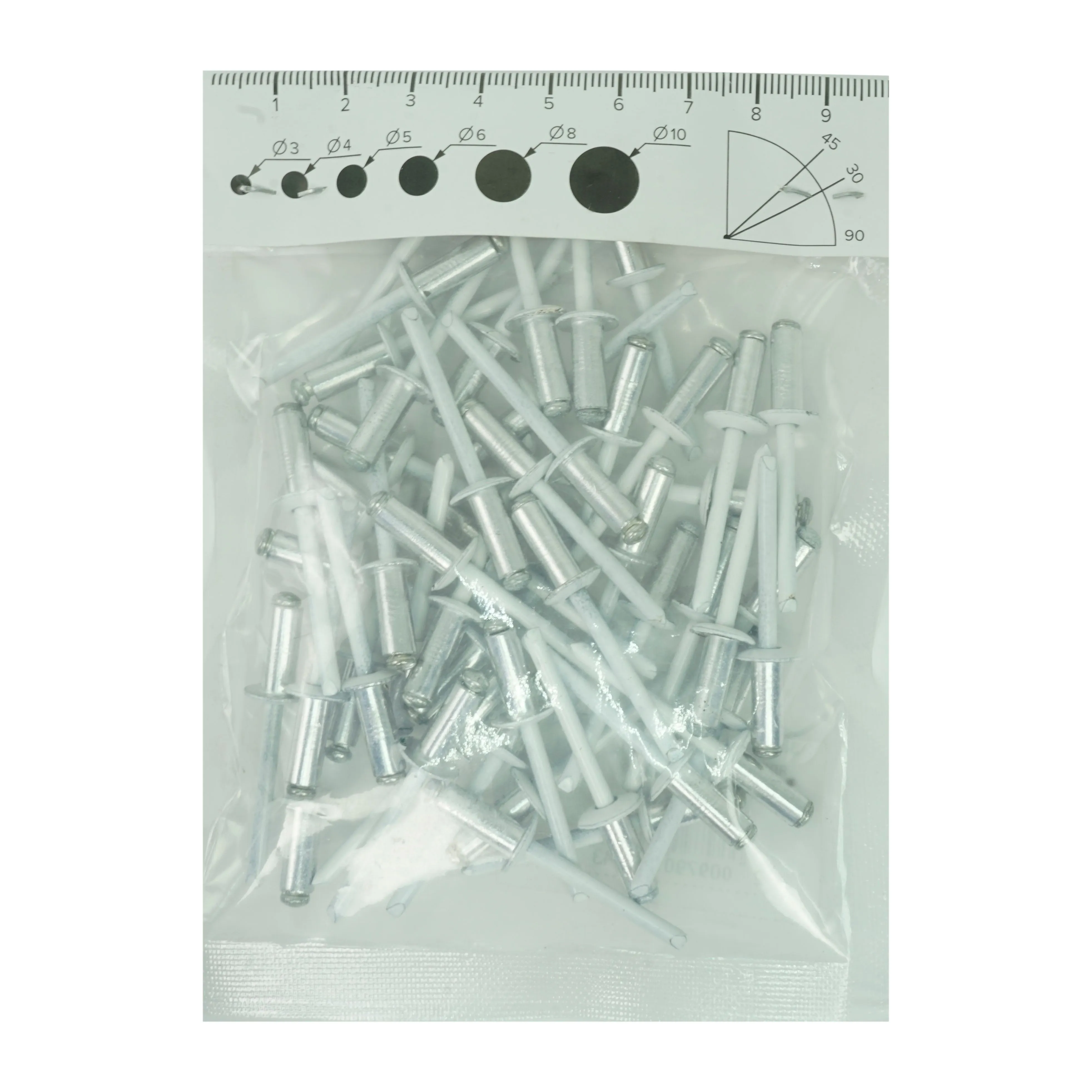 Заклепка вытяжная алюминий/сталь RAL9003 ярко-белый 4,8х12мм, пакет 50шт цена - купить в Барнауле, Бийске. Размеры, характеристики, фото в интернет-магазине.