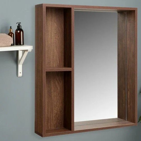 Универсальное зеркало, выполненное из долговечного влагостойкого материала. Помимо своей основной функции, имеет систему хранения в виде полочек. За счет своей компактности и элегантности впишется в любой интерьер помещения.