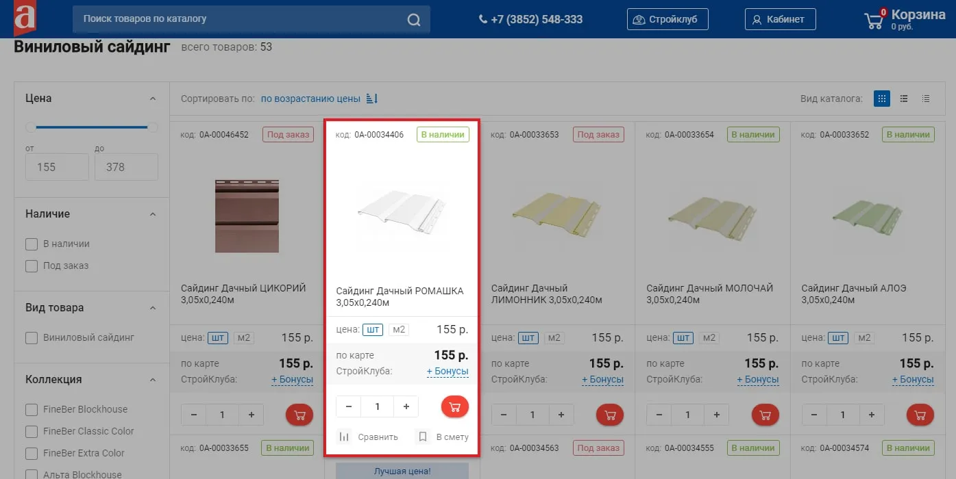 Чтобы посмотреть более подрбную информацию о товаре — нажмите на карточку товара.