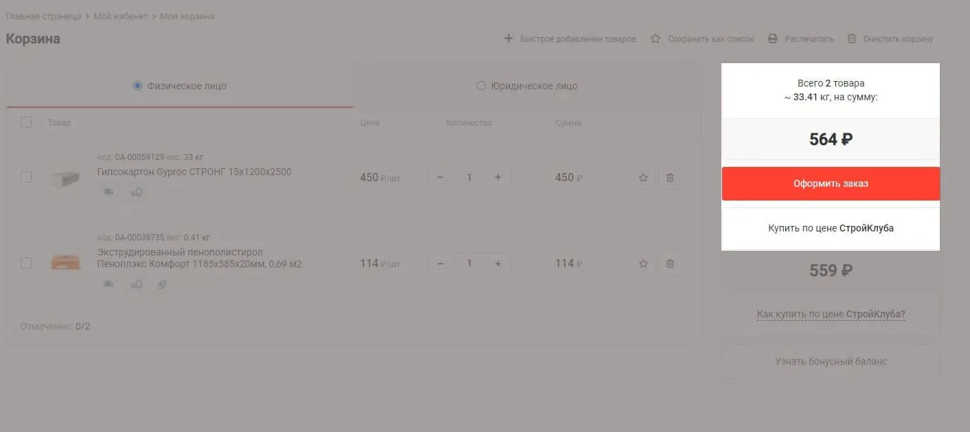 В корзине необходимо еще раз проверить состав заказа, правильно ли указаны товары и их количество.