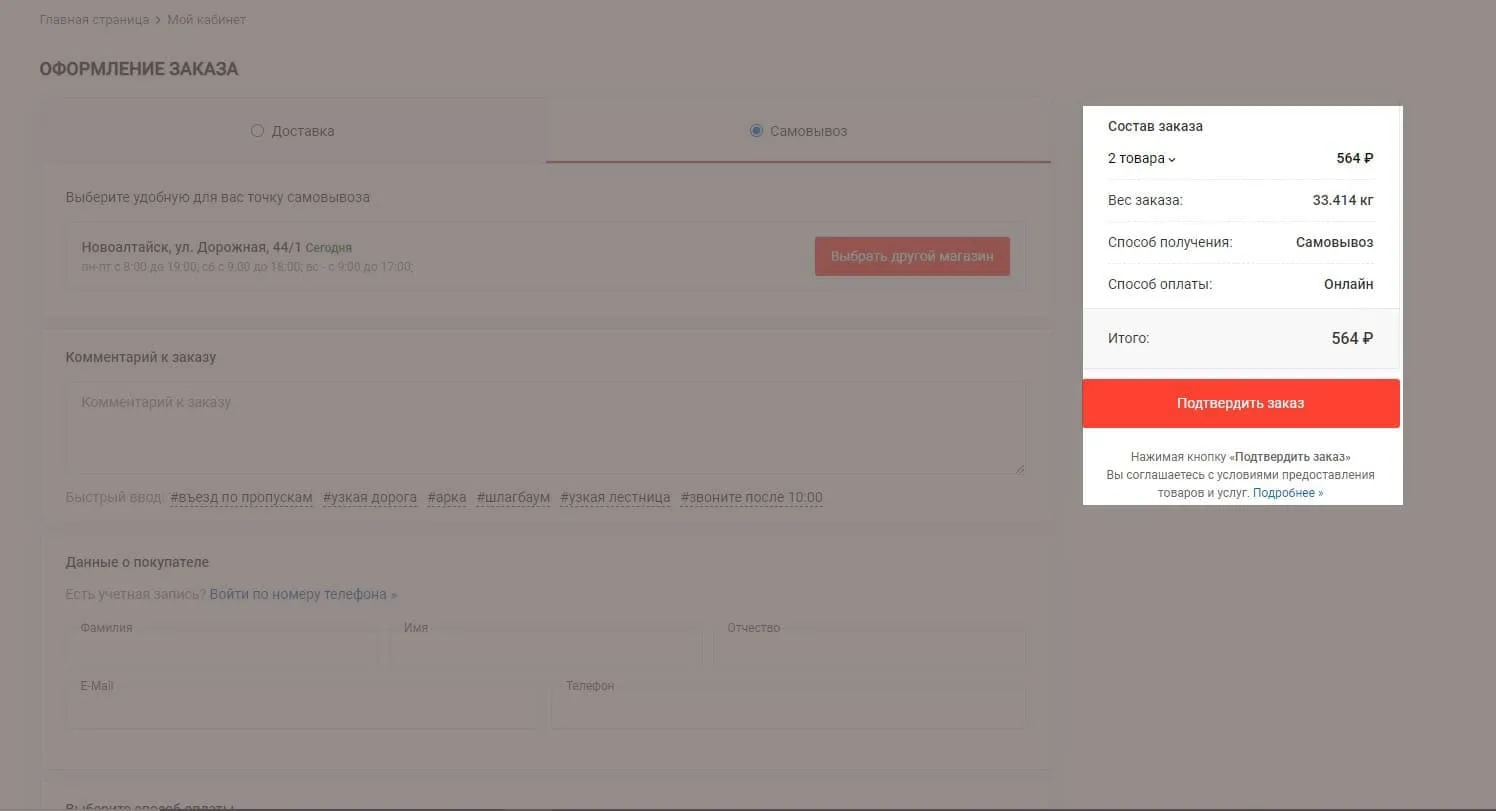 Если все верно, подтвердите заказ нажатием кнопки «Оформить заказ».